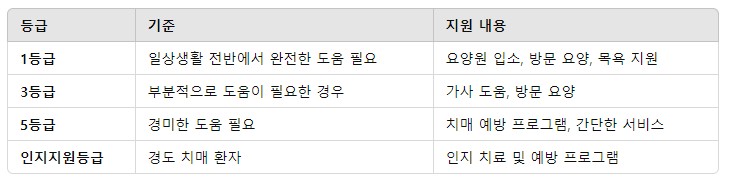 장기요양등급은 1~5등급과 인지지원등급으로 나뉩니다.